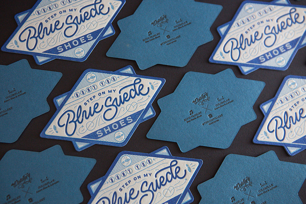 Being huge music fans at the studio, we wanted to expand on this idea for these pieces – by taking some of our favourite studio sounds, and creating typographic keepsakes based on them. We picked some of our favourite artists – Prince, Nena, Elton John and Elvis, to base these works around. After countless sketches and exploration, our idea was for each piece to have its own personality – and for it to capture the era and feeling of the song via typographic illustration. To further showcase the colours, we decided each piece would have a different coloured stock on its front and back: Azure Blue & Adriatic, Lavender & Purple, Bright Red & Scarlet and Factory Yellow & Citrus. This effect not only doubles the thickness of the stock, but also gives the piece some striking depth and contrast.